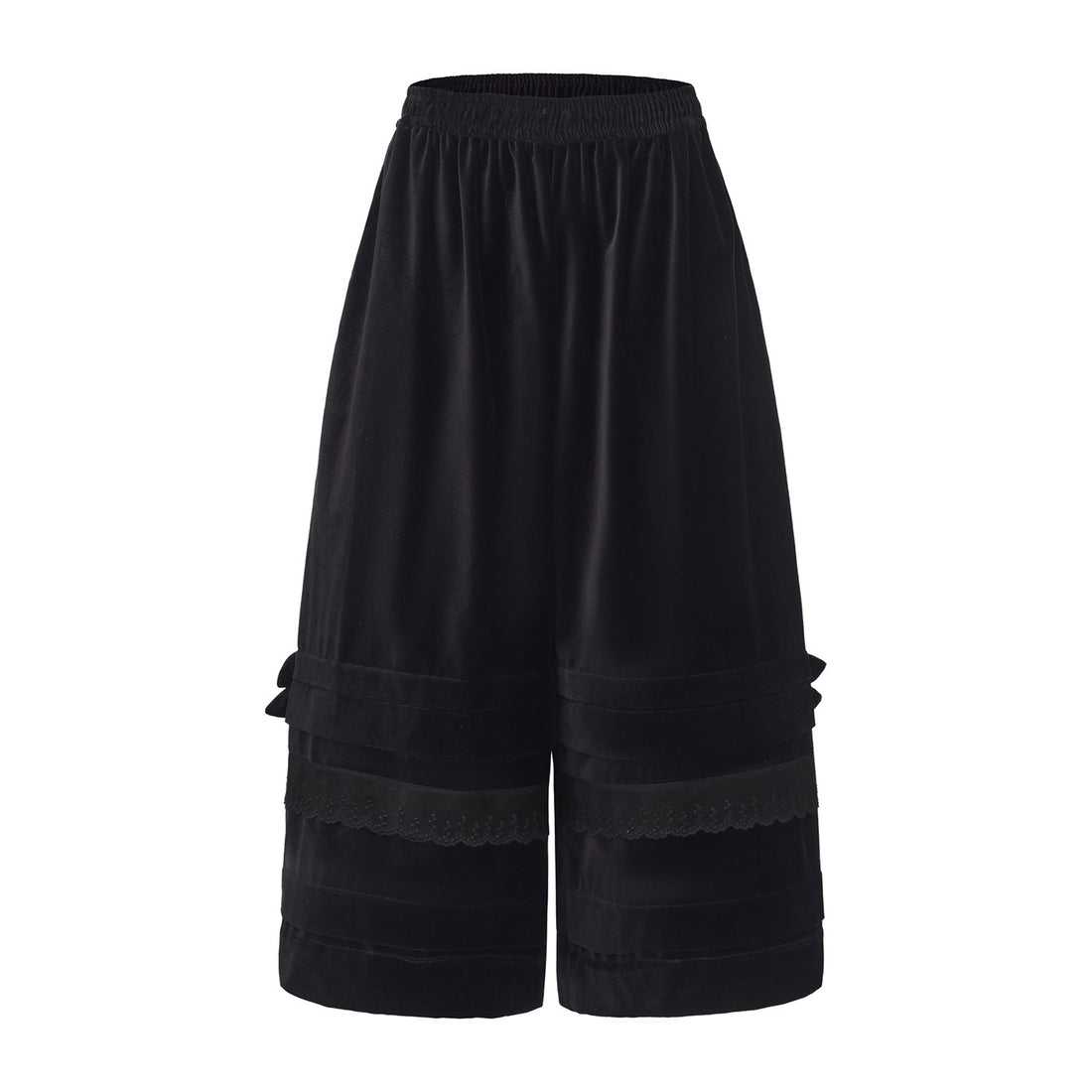 Tucked Elastic Lace-Trim Pants-Black