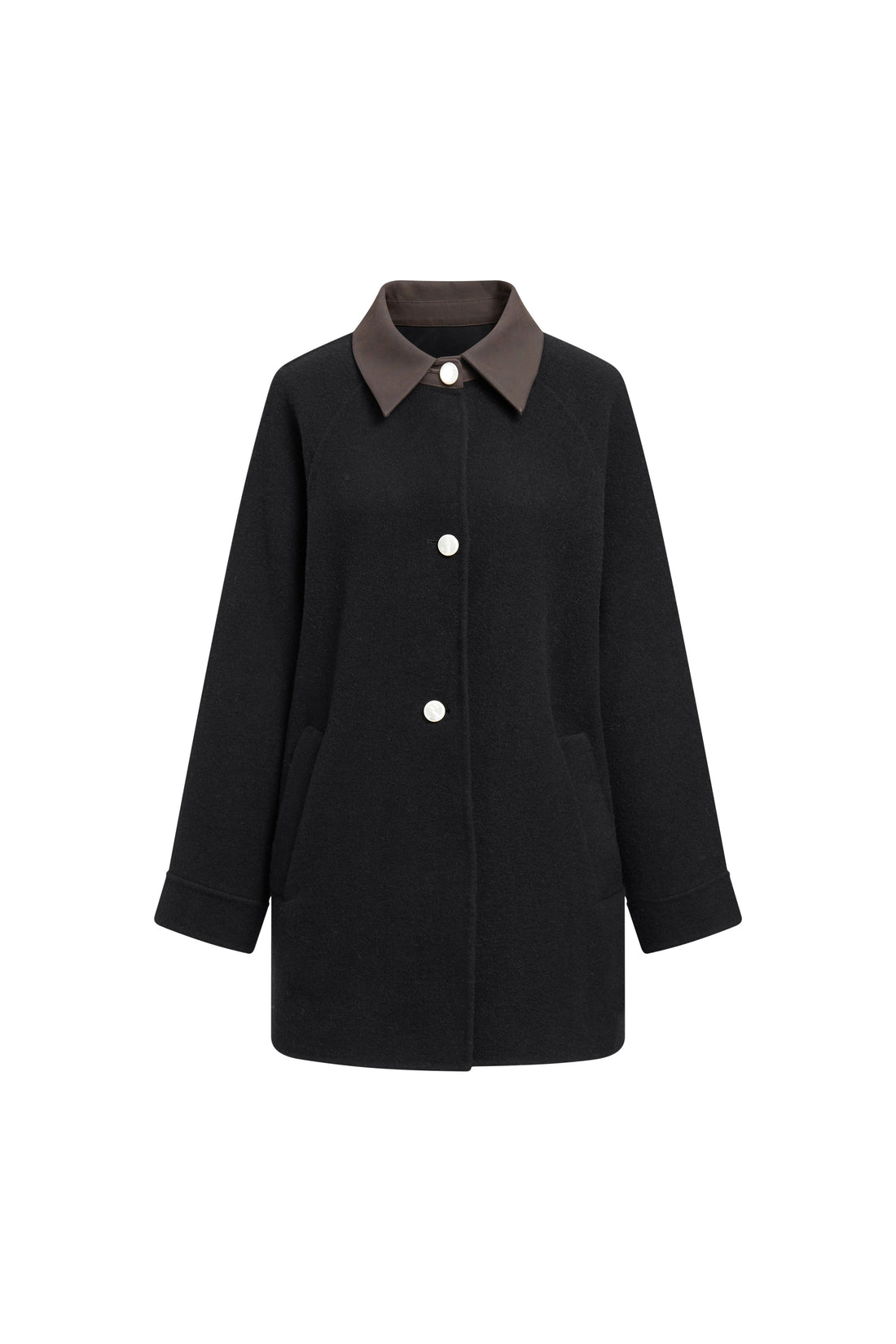 100% wool stand-up fleece.Relaxed, lightweight, warm.Coffee suede PU collar.3 luxury full shell buttons (shiny).Oversized 3D...