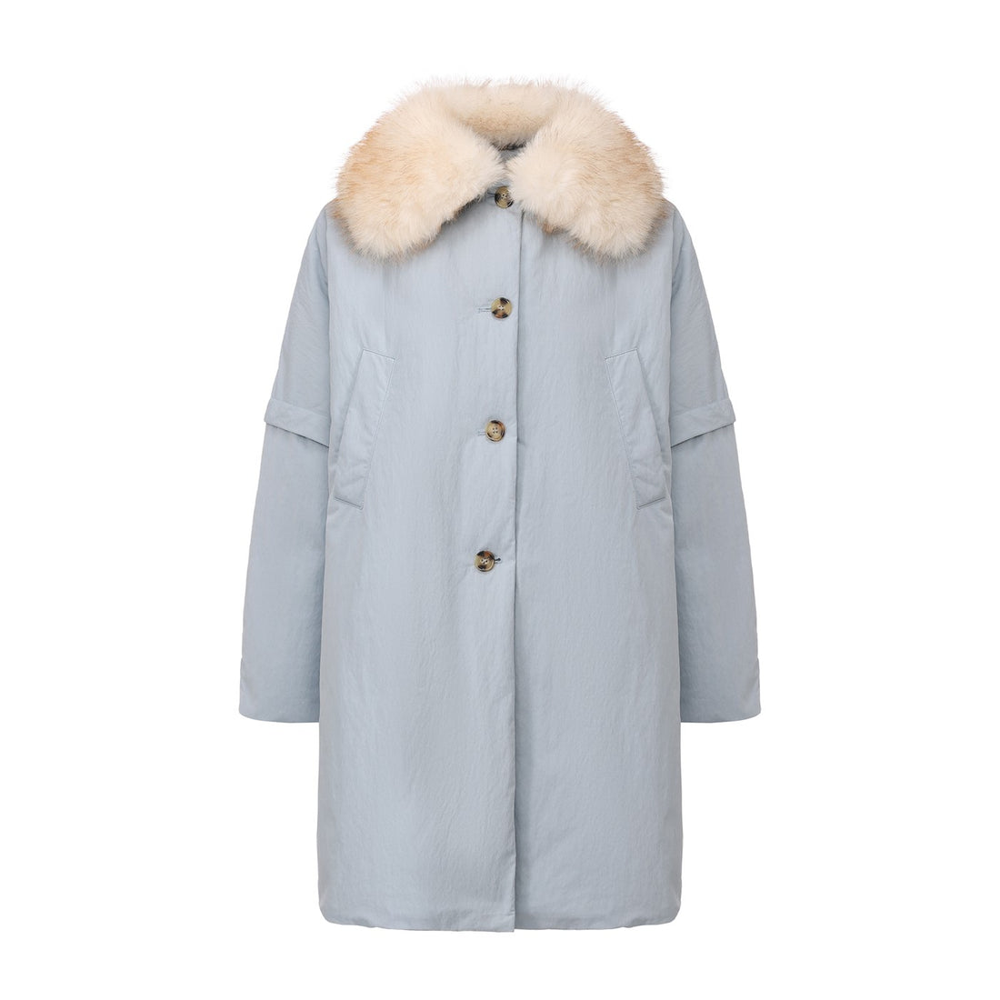 Faux-fur Collar Down Jacket-Blue