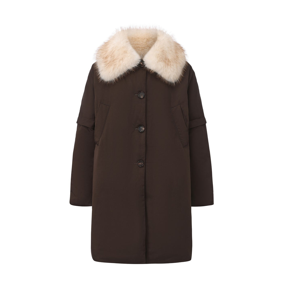 Faux-fur Collar Down Jacket-Brown