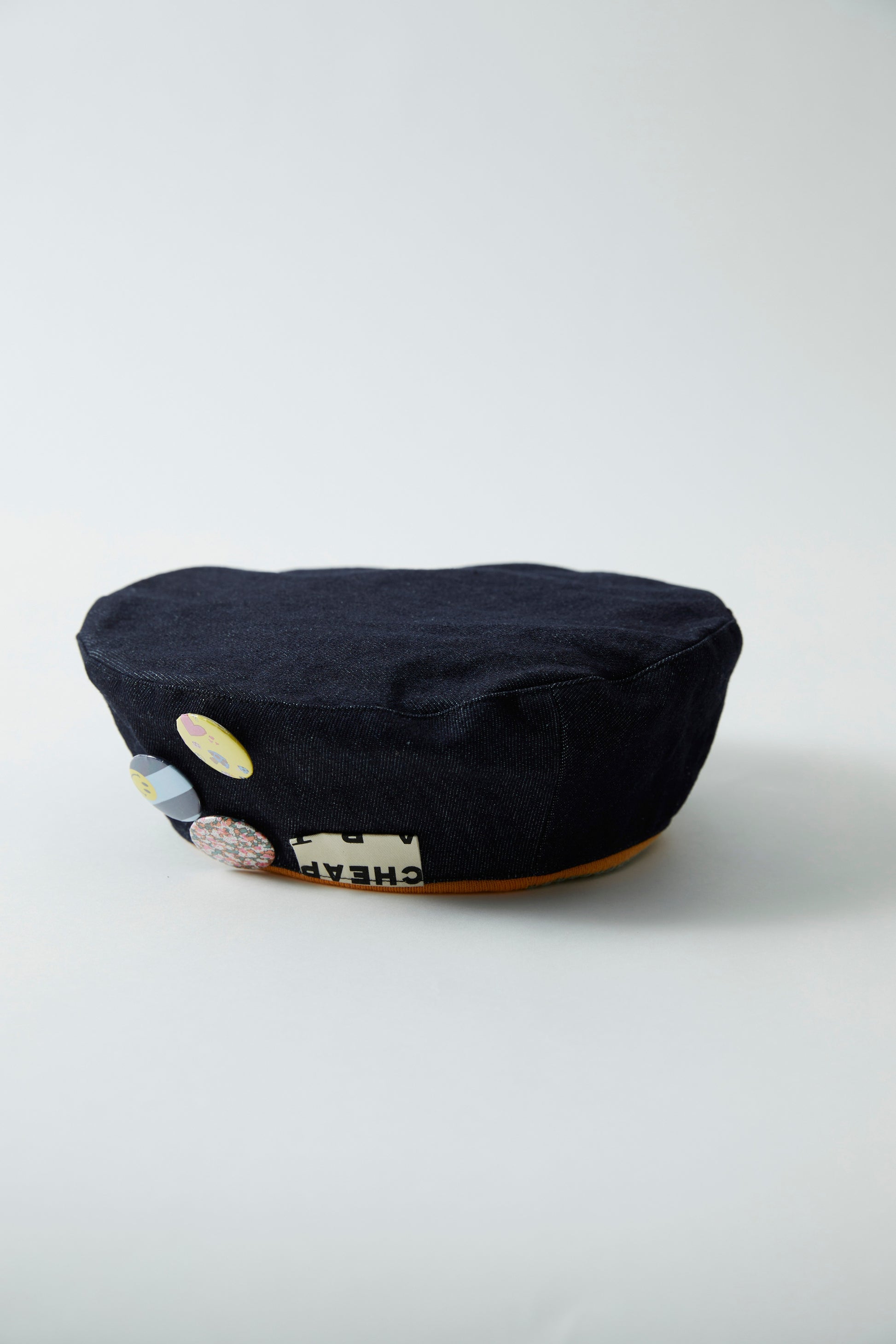Soft, structured beret with a playfully puffed silhouette, available in navy denim and blue wave stripes.