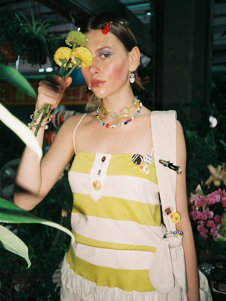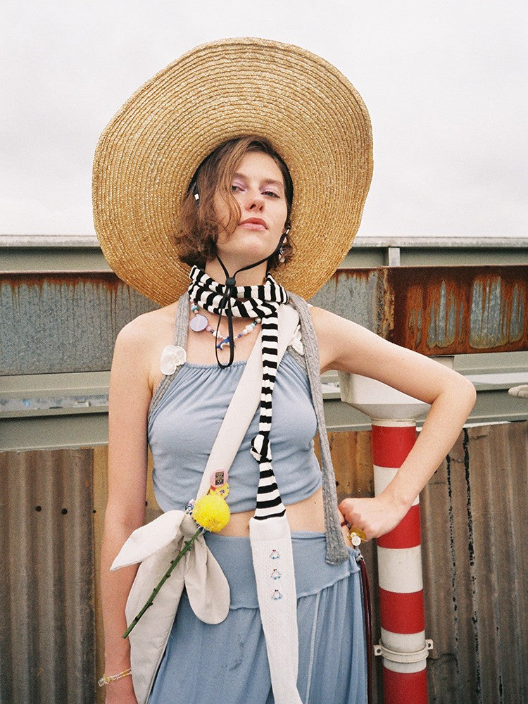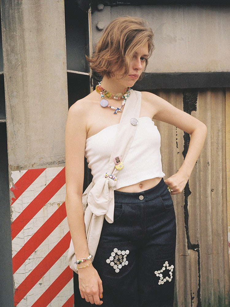 Embellished with Cheap Art Label’s signature playful badges and beaded charms, creating a custom, DIY-like character.