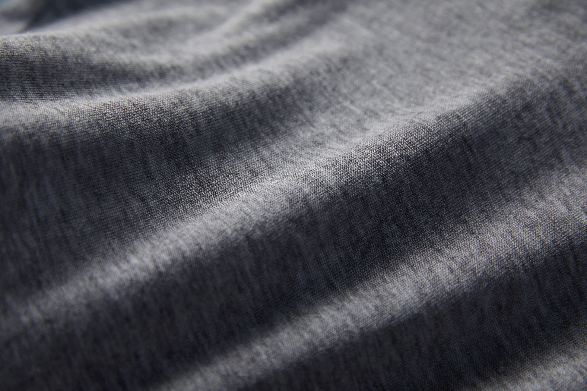 Heather gray stretch fabric (blended with wool and Tencel) for ultimate comfort.
