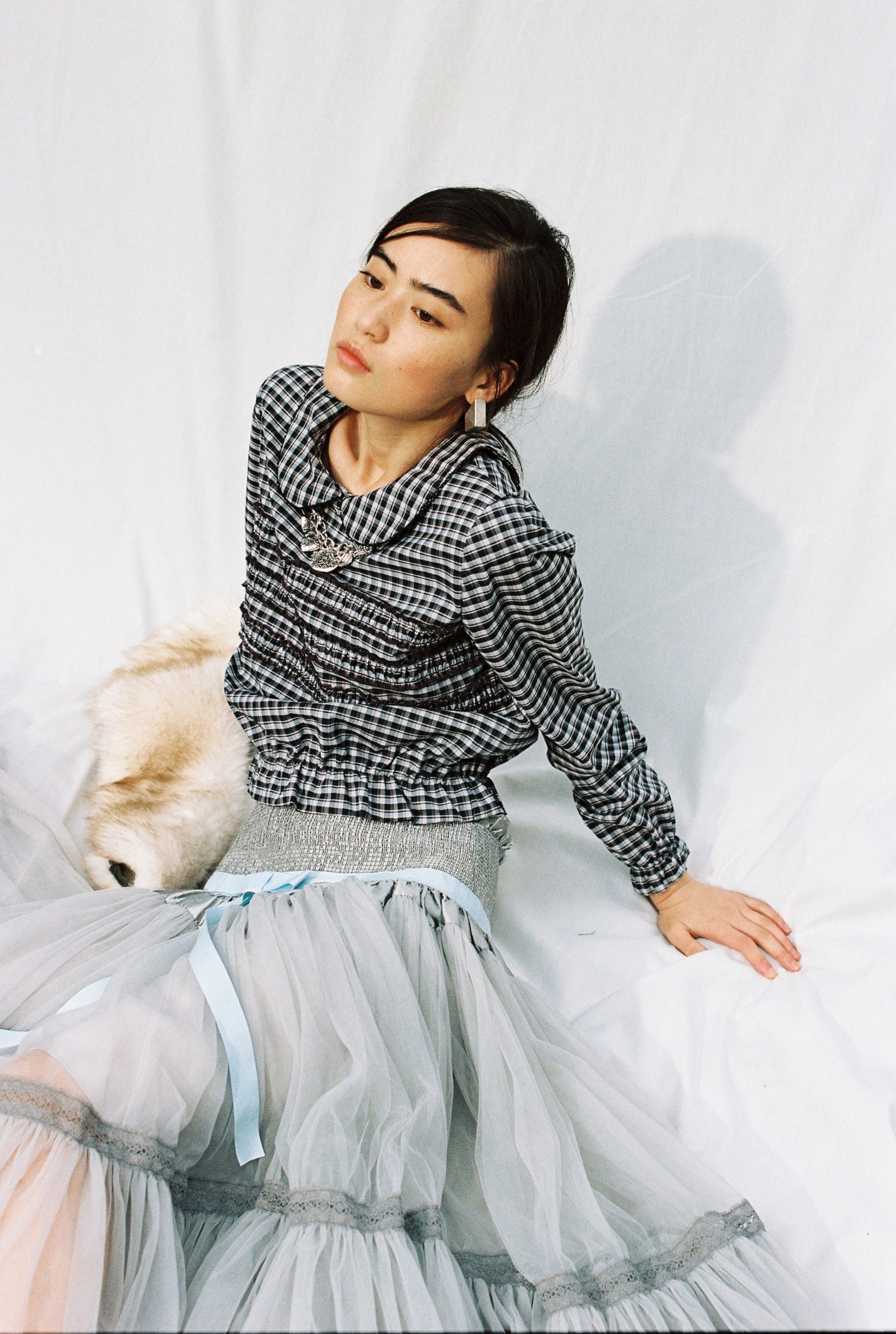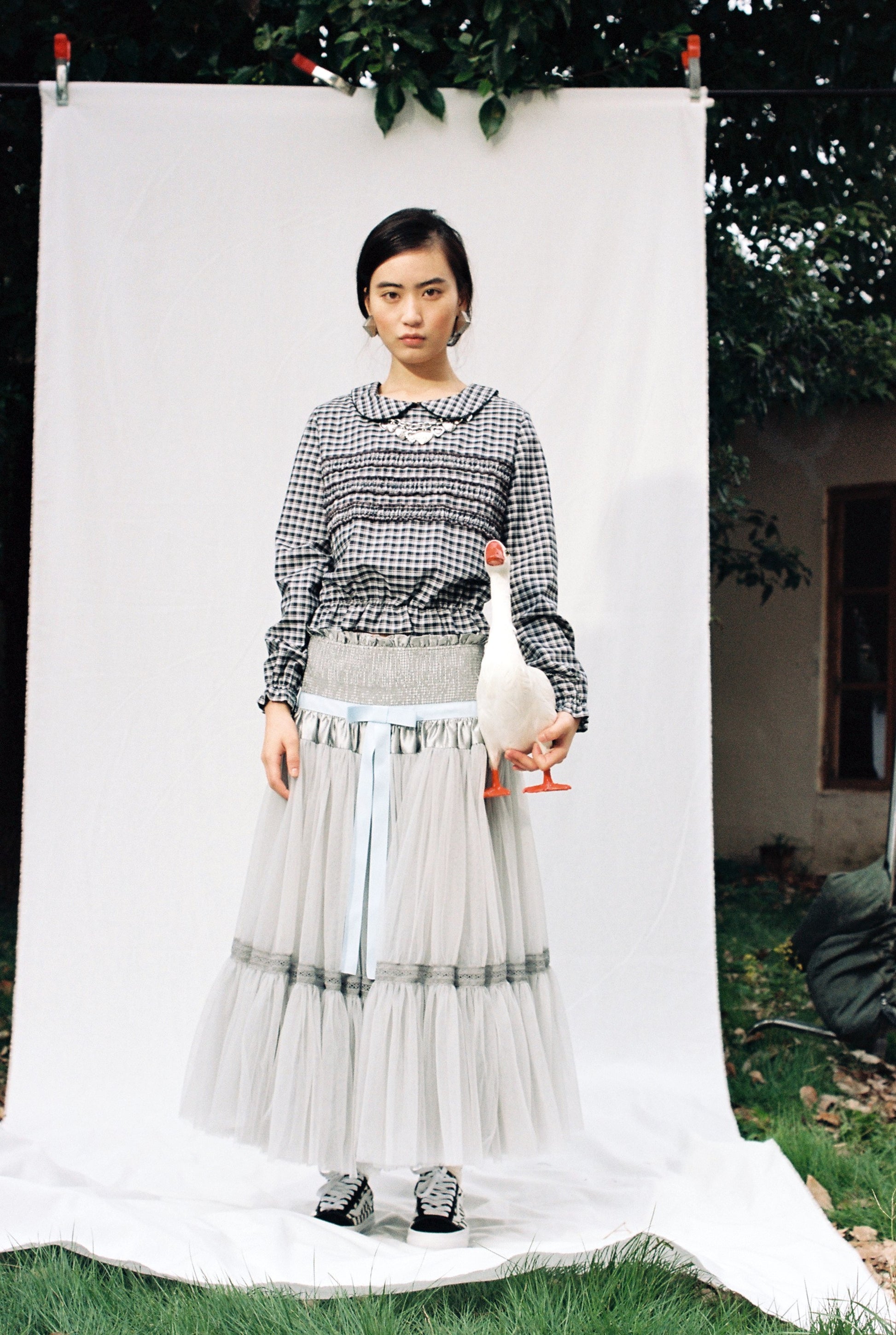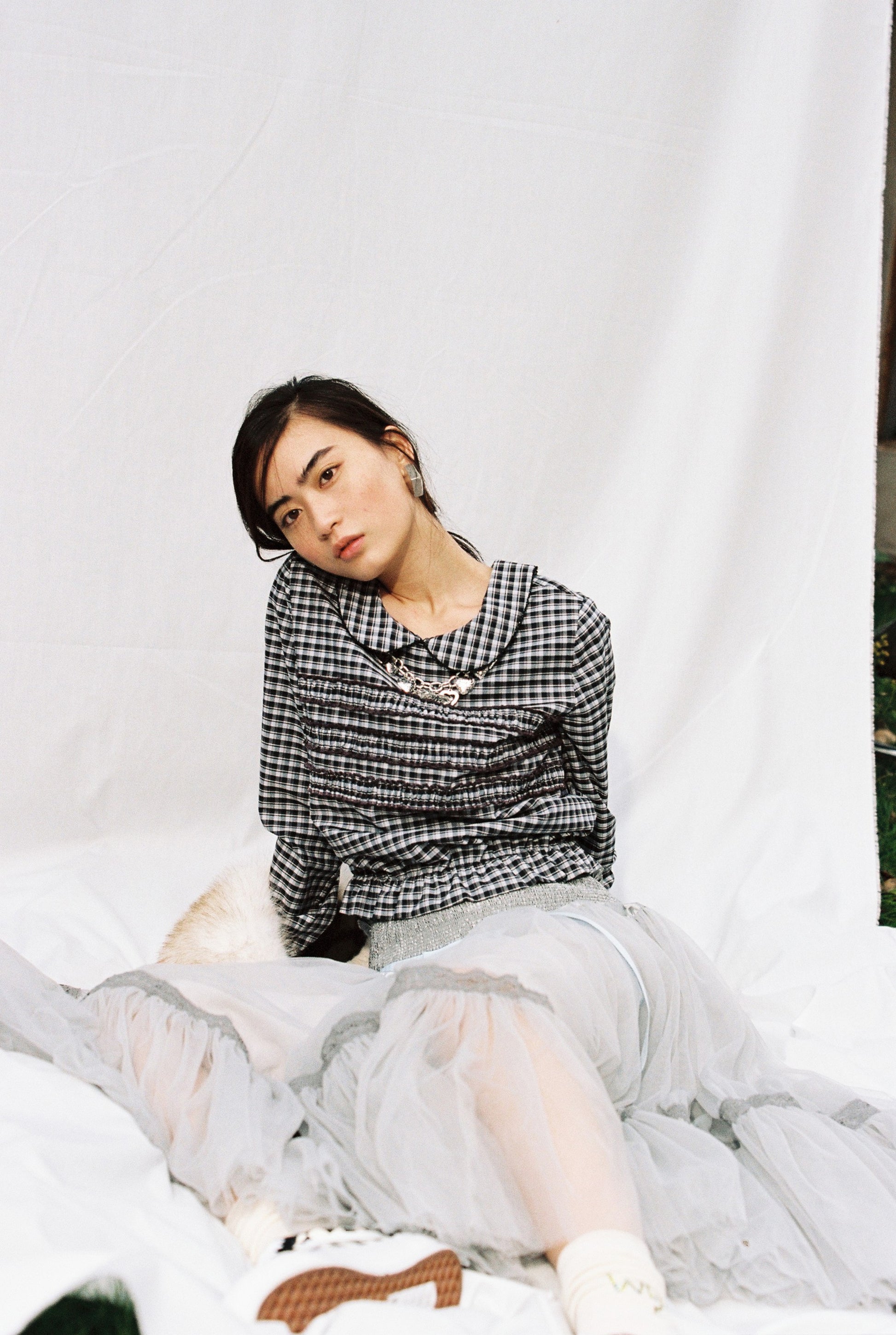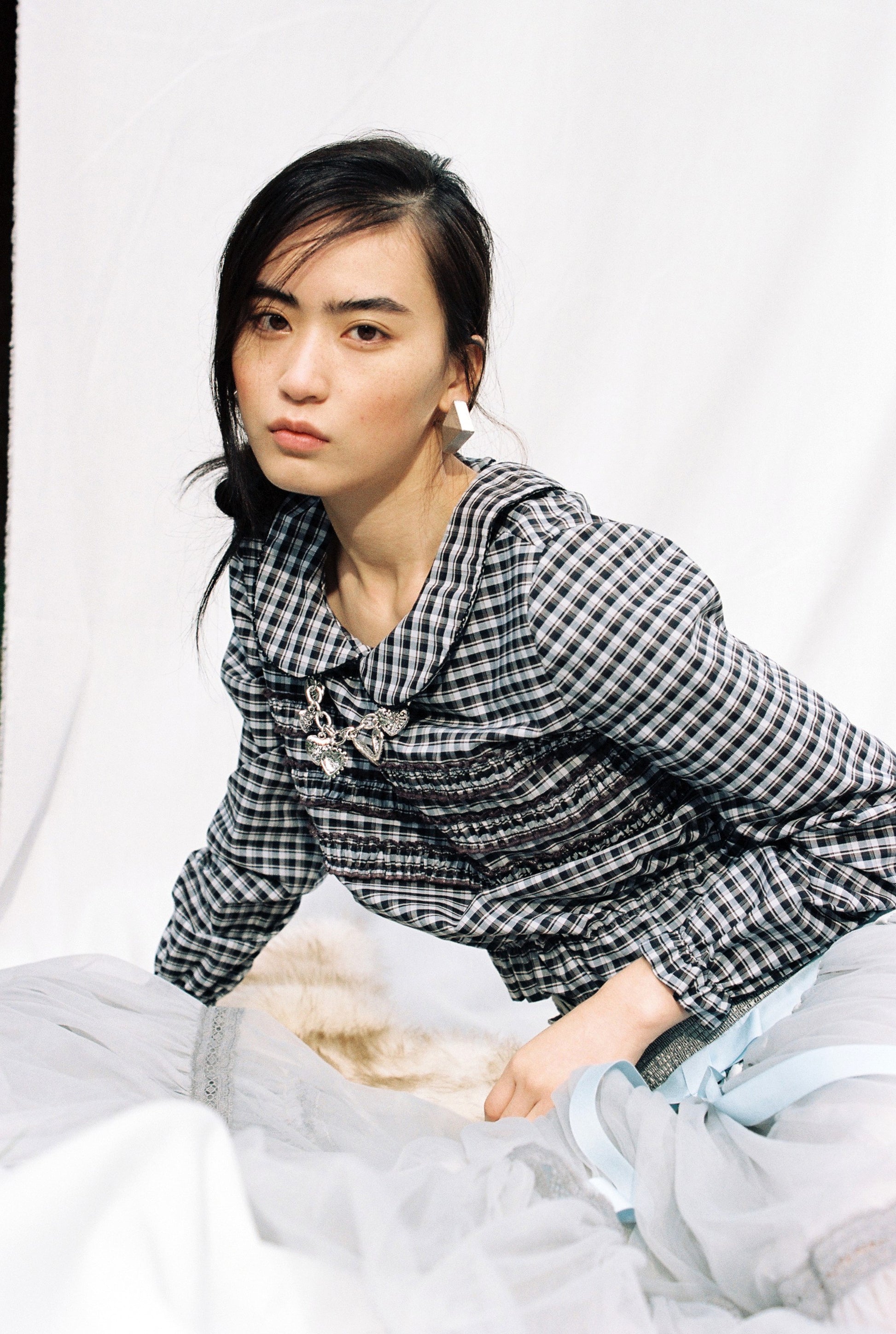 Classic gingham Peter Pan collar in a retro uniform style.