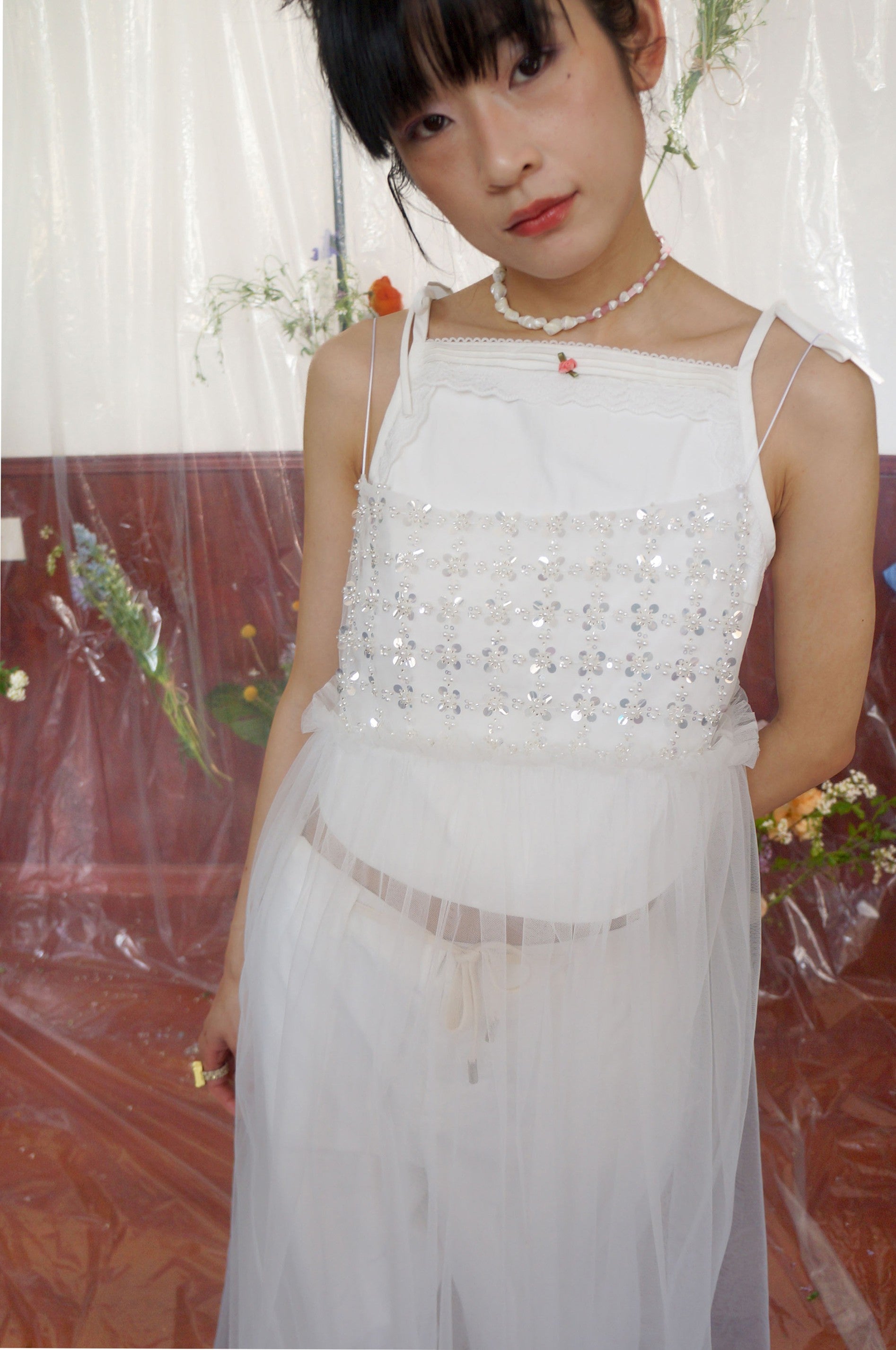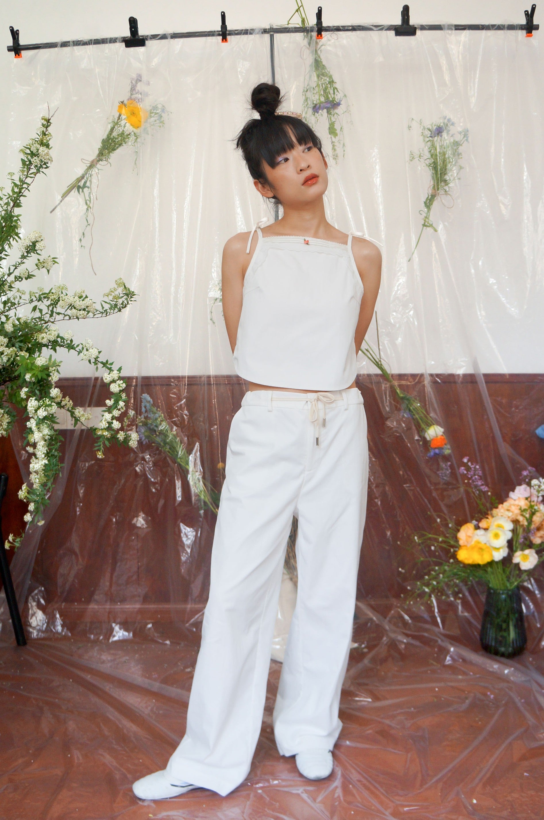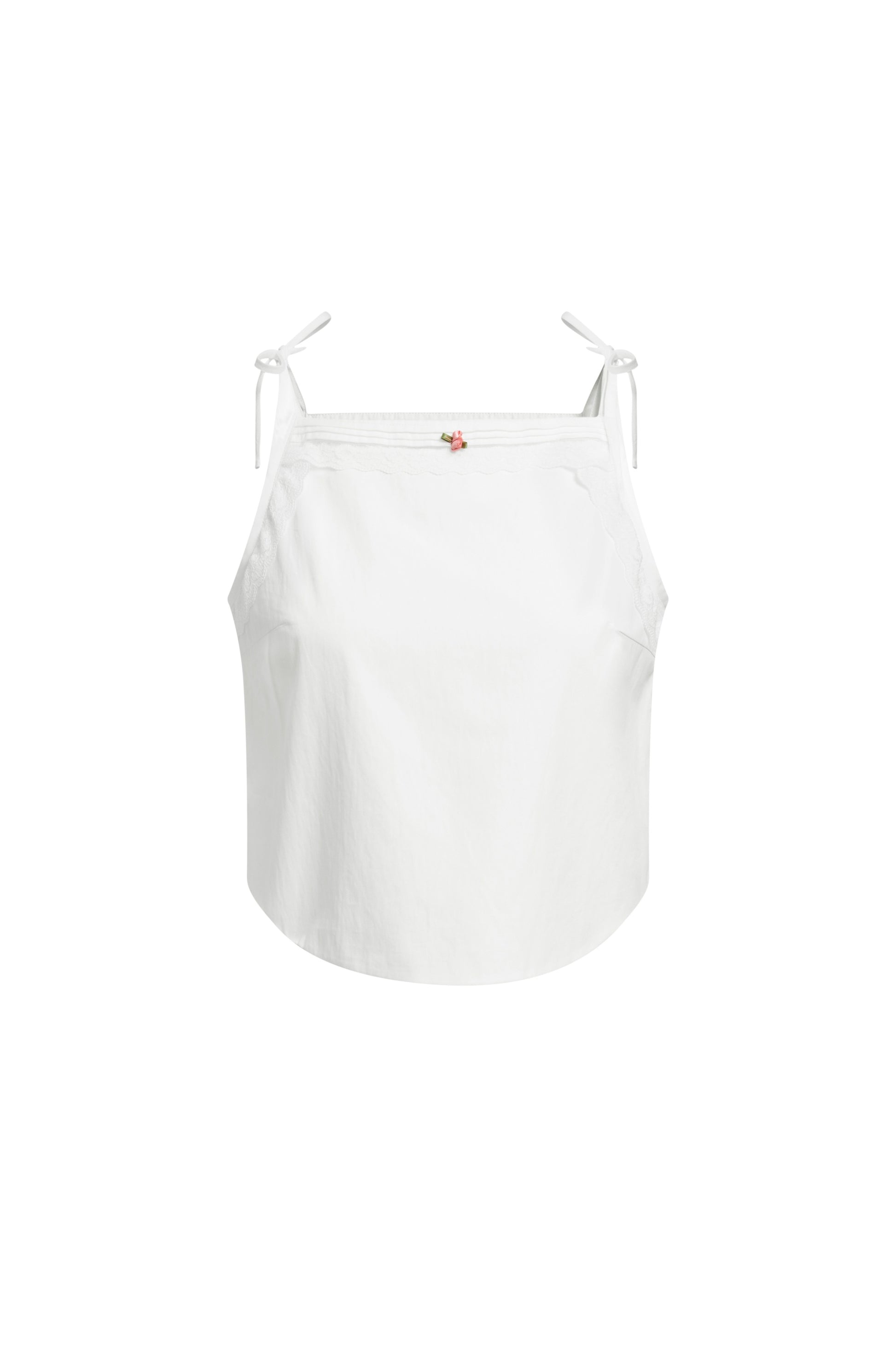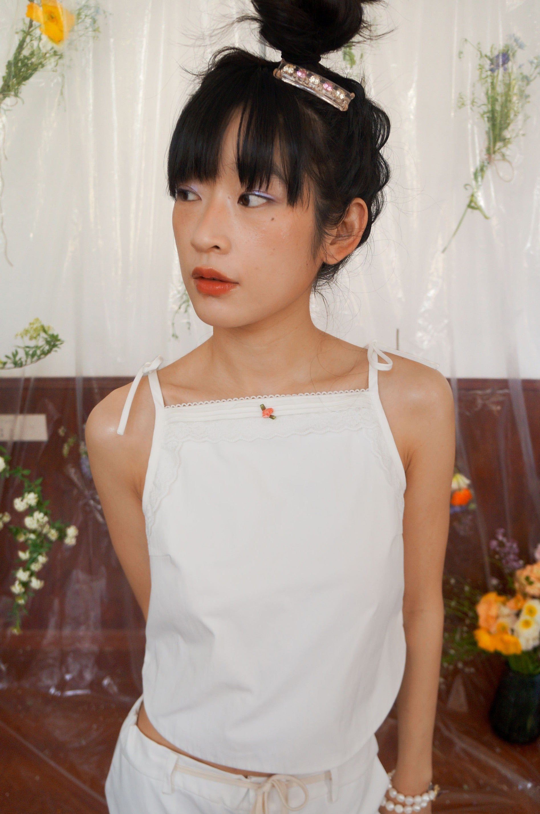 Front embroidered with a tiny pink rose for a soft vintage touch.