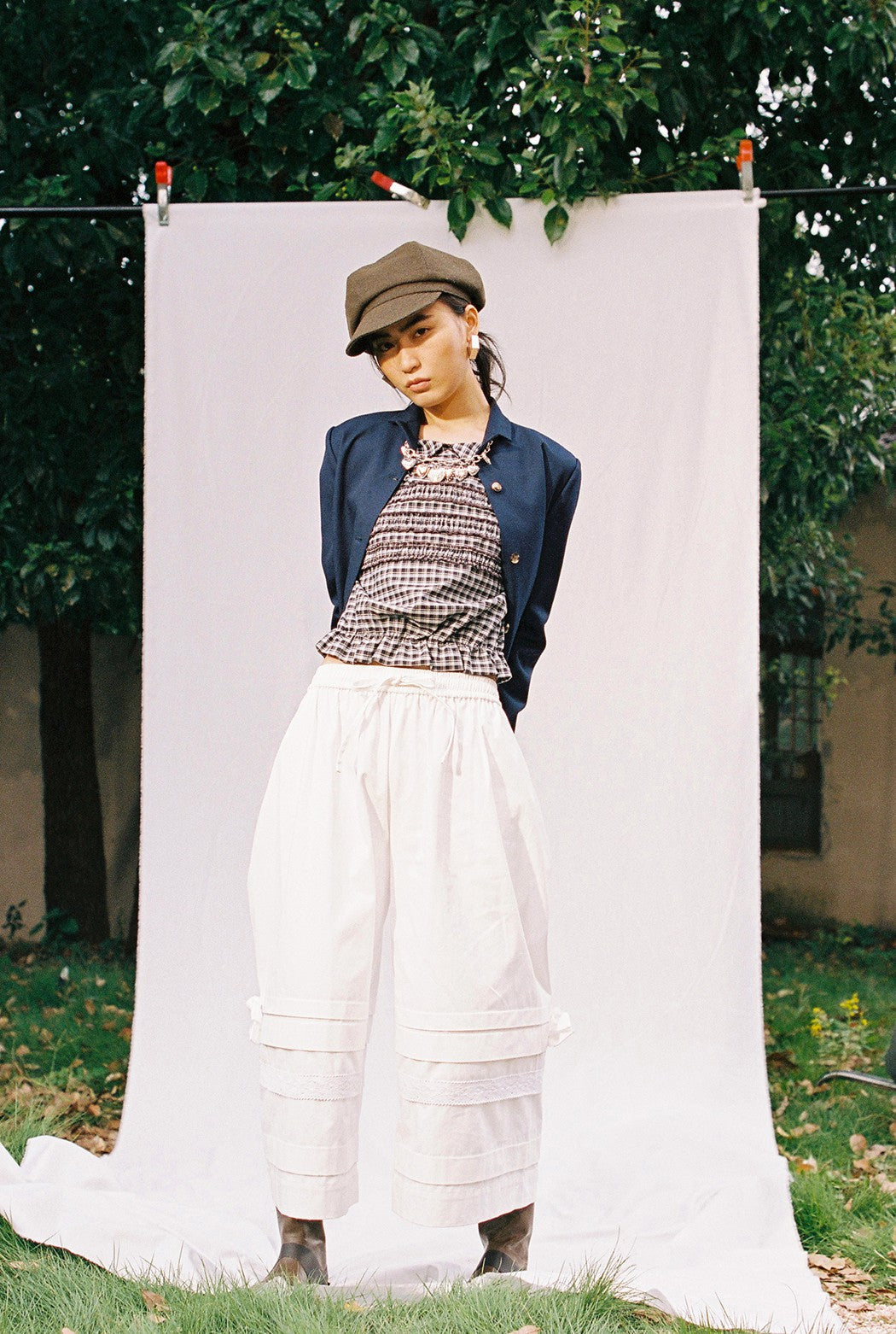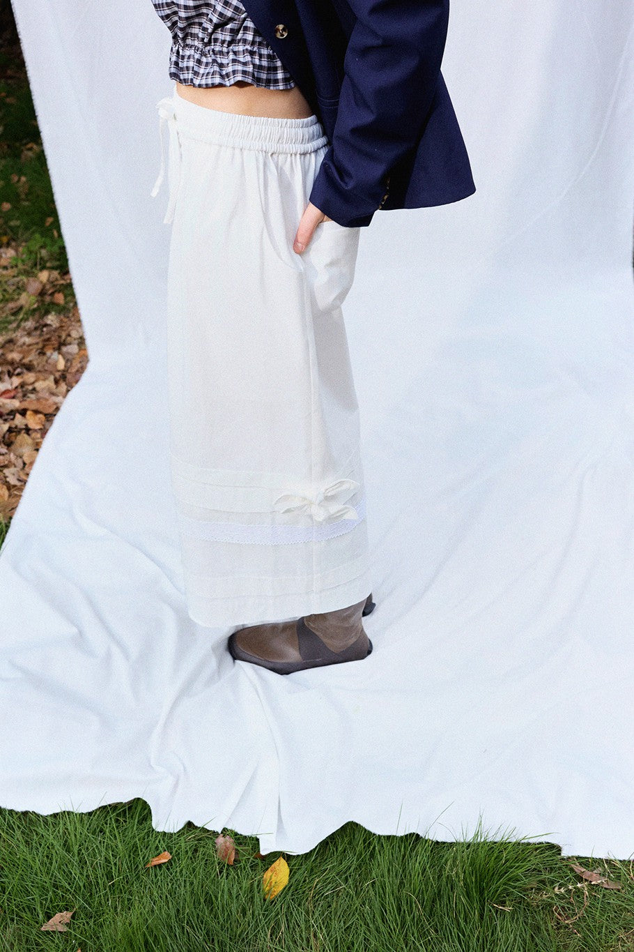 Extra-wide pant legs in structured cotton for a bold, clean shape.